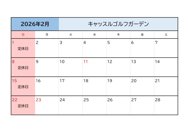 【キャッスルゴルフガーデン】※お知らせ※と2026年2月の営業時間について